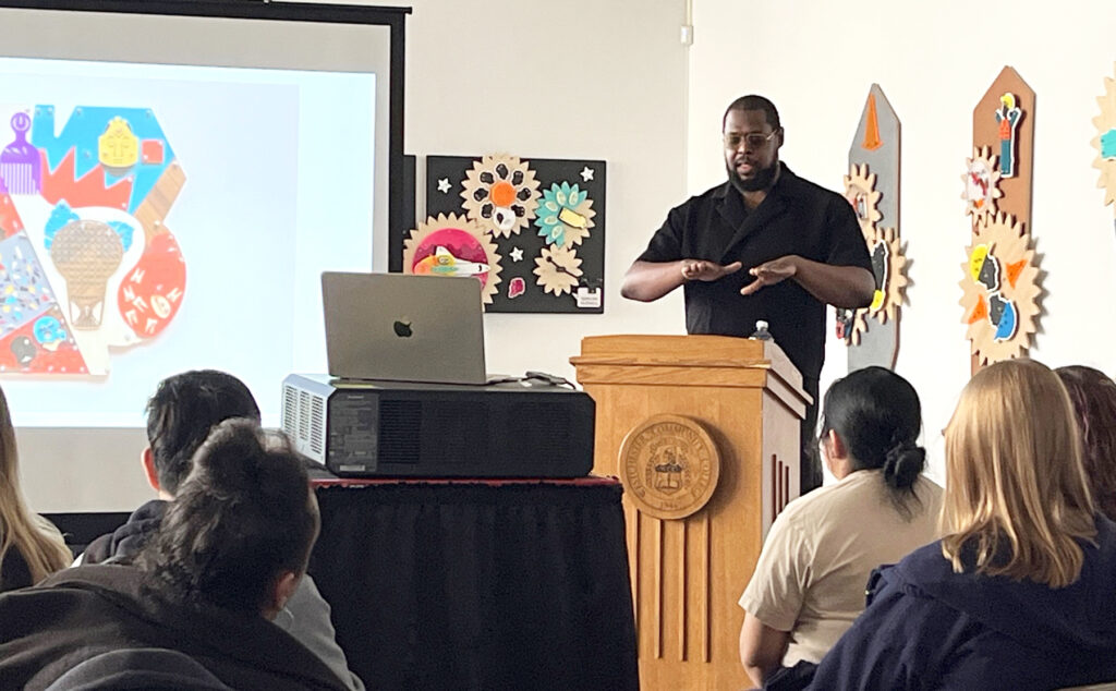 The WCC Art Gallery hosted an artist talk for our students by Damien Davis, whose exhibition, “CUT : COLOR : CODE” is on view in the gallery through November 15.