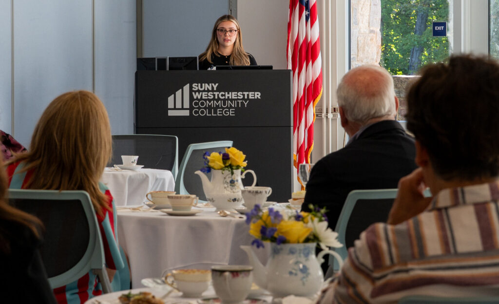 Our Hartford Hall Society Tea, chaired by Joanne Landau, provided a timely update on the College by Dr. Miles and the inspiring personal story of Honors College student (and recent Cambridge Study Abroad participant) Bella DelDuco. Members are those who have made a bequest or other legacy gift or established an endowment to ensure that SUNY WCC’s mission of providing high-quality, affordable education to our students will continue in perpetuity. There are many easy ways to join; please contact me at ds38@sunywcc.edu if you or anyone you know would like more information or if you would like to see a video of the program.