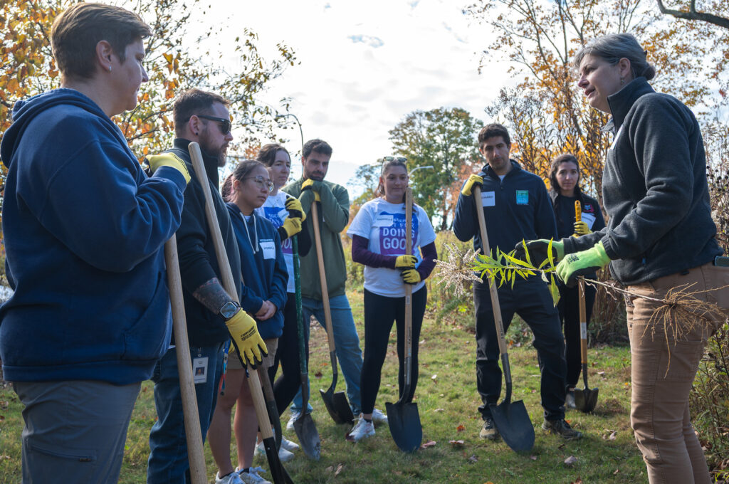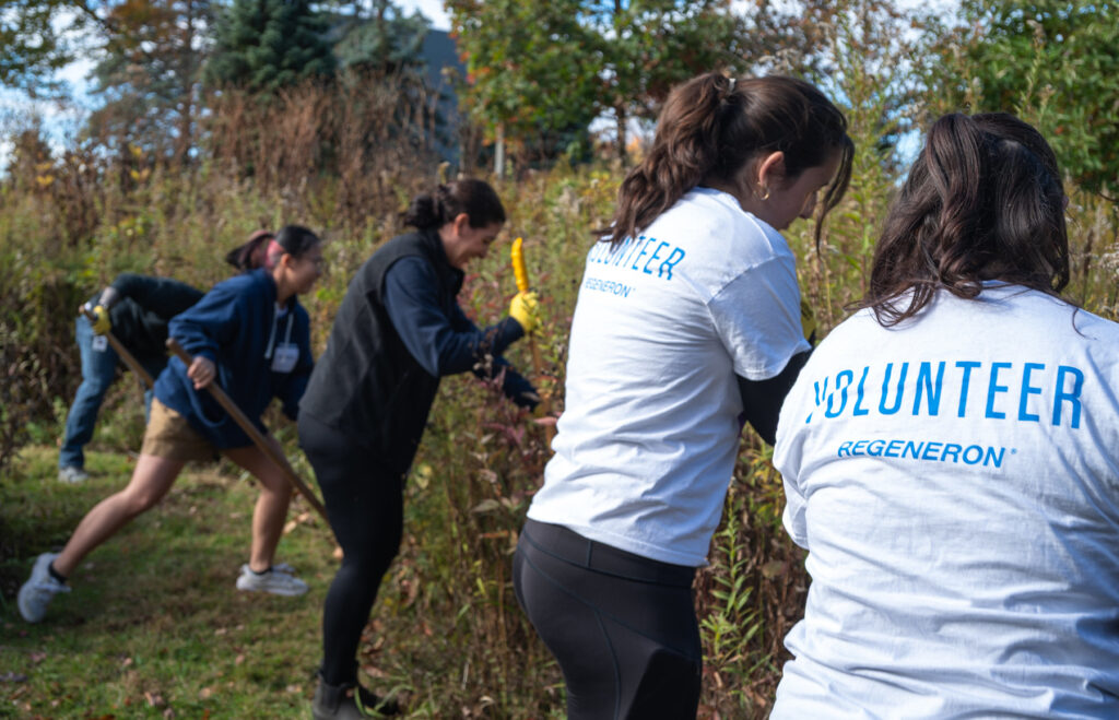 Volunteers from Regeneron spent their Day of Doing Good—an effort coordinated by Volunteer New York—restoring the meadow in our Native Plant Center for biodiversity.