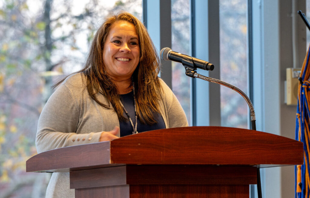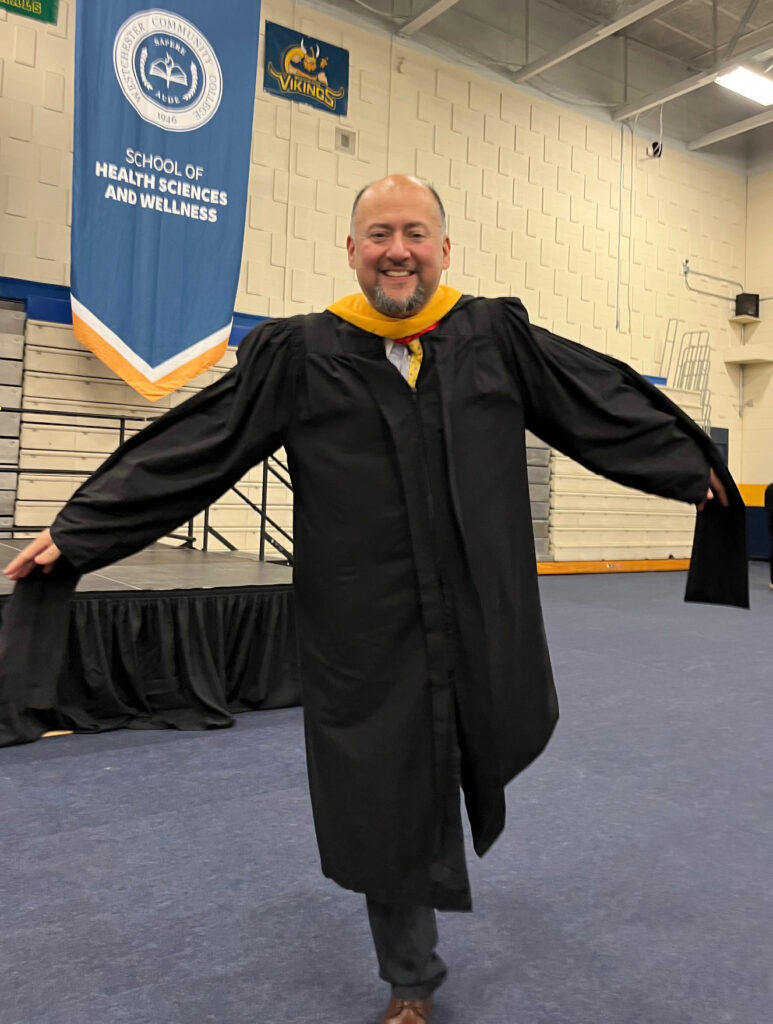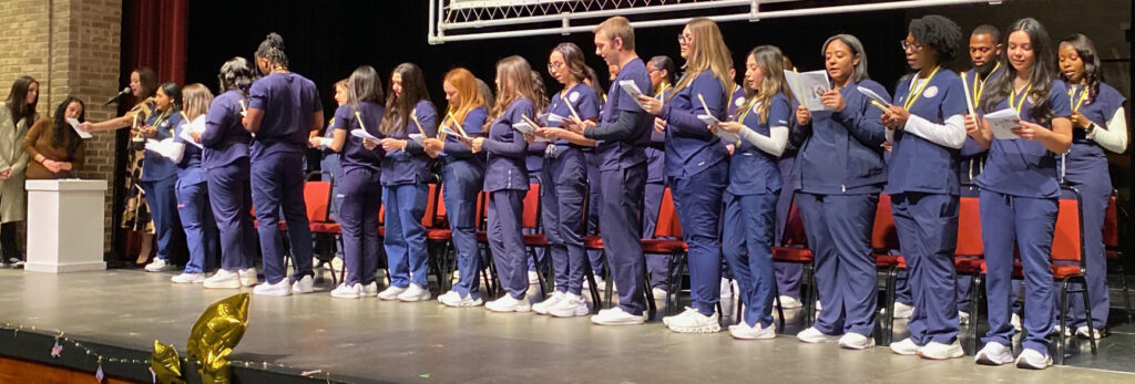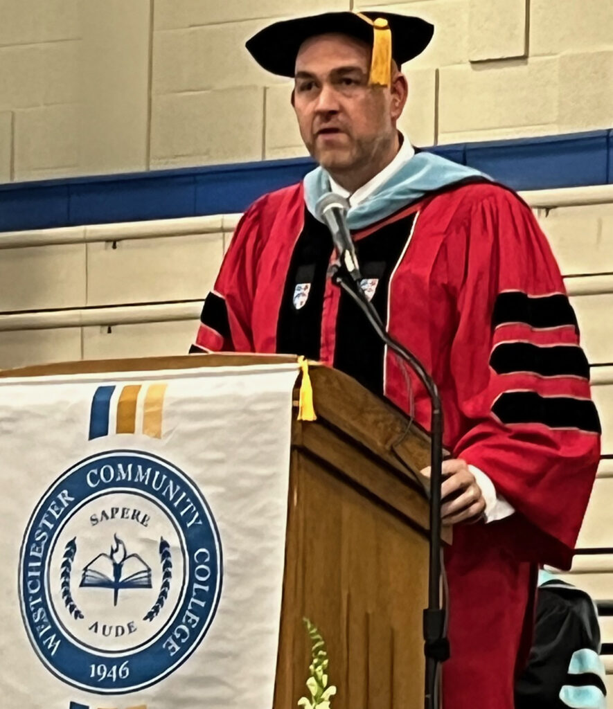The newest graduates of SUNY WCC’s nursing program were recognized at the December Pinning Ceremony. Our late nursing faculty member, Professor Christine Dunnings, who had worked at Northern Westchester Hospital, was remembered with the presentation of the inaugural Christine Dunnings Scholarship to new graduate Jasmine Richardson, with Christine’s husband Michael, and Derek Anderson, Senior Vice President, Northern Westchester Hospital, Northwell Health, in attendance. Dean George Contreras recognized the Steven & Alexandra Cohen Foundation for its extraordinary support of our nursing students.
