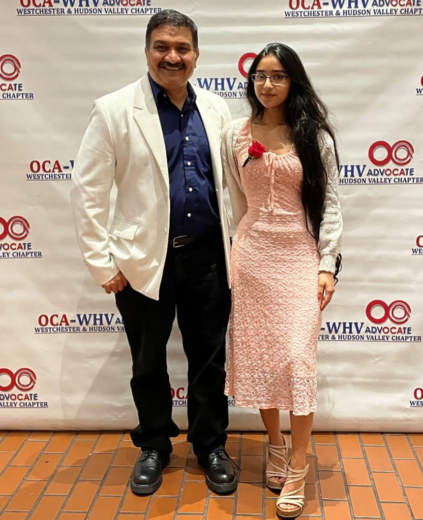 The recipient of the OCA Westchester & Hudson Valley Chapter Asian Student Endowed Scholarship at SUNY WCC, Anya Kanojia, and her father Naresh Kumar, attended the OCA-WHV Gala & Dynamic Achiever Awards dinner.