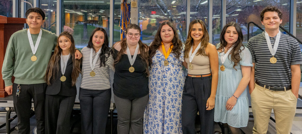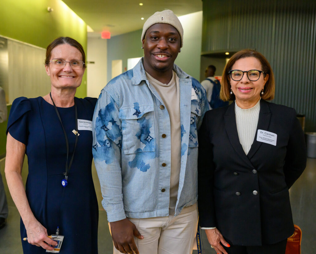 More than 100 PepsiCo Foundation Uplift Scholars were celebrated. This award reduces barriers for students who face financial challenges and need additional support to achieve their academic and career goals. The award of up to $2,000 helps support the cost of education for both degree-seeking and short-term workforce students pursuing careers in Finance, Technology, Engineering, and Business. PepsiCo representative Anthony Booker assisted President Belinda Miles in the presentation of scholarship medals; Alum Tyler Cole, ’25, former Uplift Scholar, encouraged students to “Never stop figuring it out.”