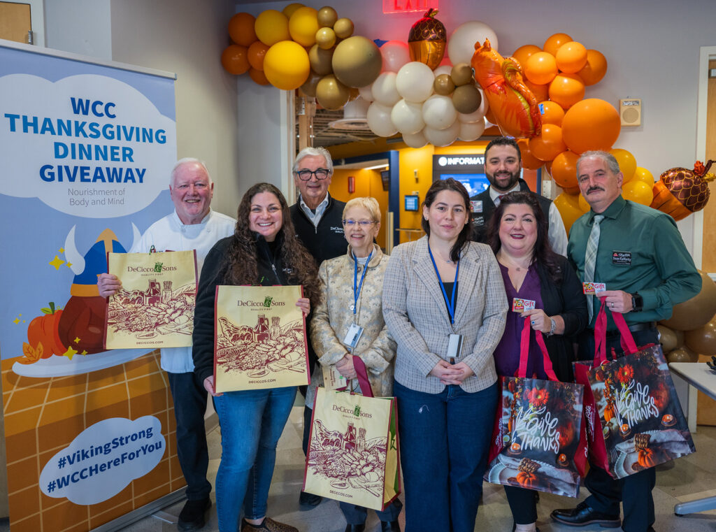 Thanks to our partners DeCicco and Sons, which contributed 300 turkeys and a special gift of 300 bags of oranges; ShopRite, which contributed generous gift cards; Feeding Westchester and the many other friends of the College on and off campus who contributed canned and packaged goods, SUNY WCC was able to provide Thanksgiving dinners—enough for a family of four—to 300 SUNY WCC students experiencing financial need. Food insecurity continues year-round for our students. If you would like to support our students who use our food pantry, please click here.