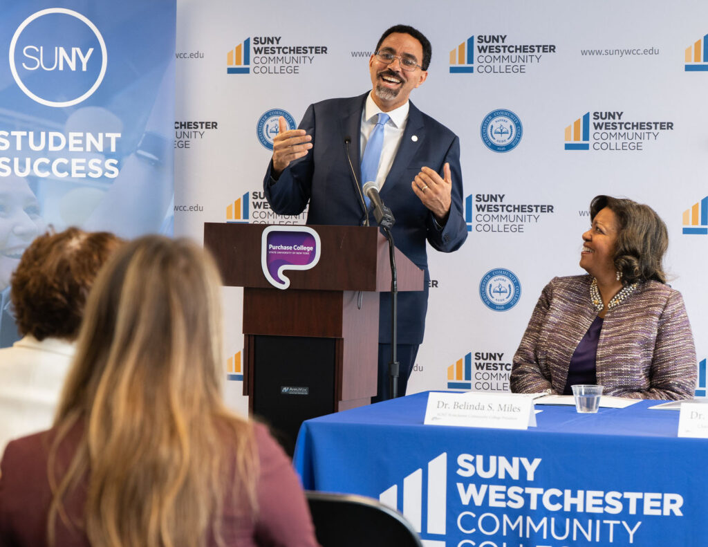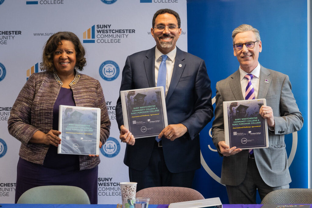 SUNY Chancellor John B. King, Jr. took part in a signing ceremony with Dr. Belinda S. Miles, President of SUNY WCC, and Dr. Michael Steiper, President of SUNY Purchase, to celebrate the new transfer agreement between SUNY WCC and SUNY Purchase, ensuring a seamless transition from associate degree to bachelor’s degree attainment.